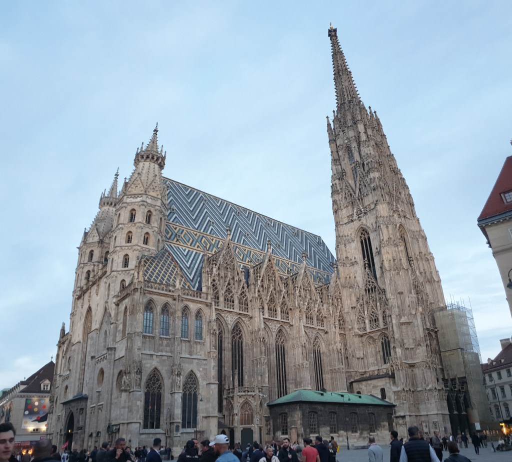 Stefansdomen är så stor så den får inte plats på bild med en vanlig (mobil)kamera. Så panoramafunktionen på för att få in den, och då blir ju hela katedralen lite fish-eye. Men principen framgår kanske iallafall.