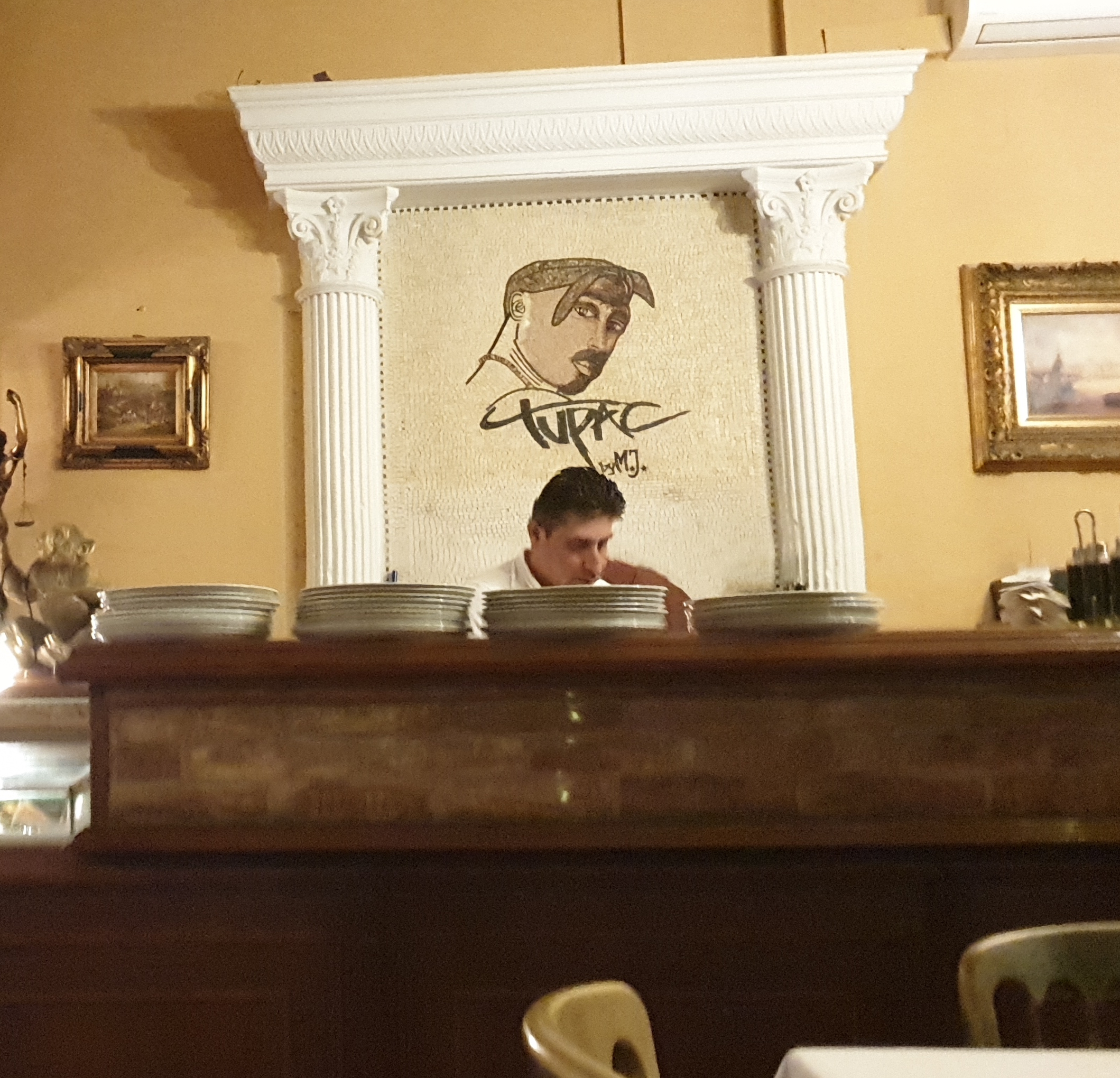 Lite otippat var att dom hade en mosaik av Tupac ovanför pizzabagaren, eller hur?