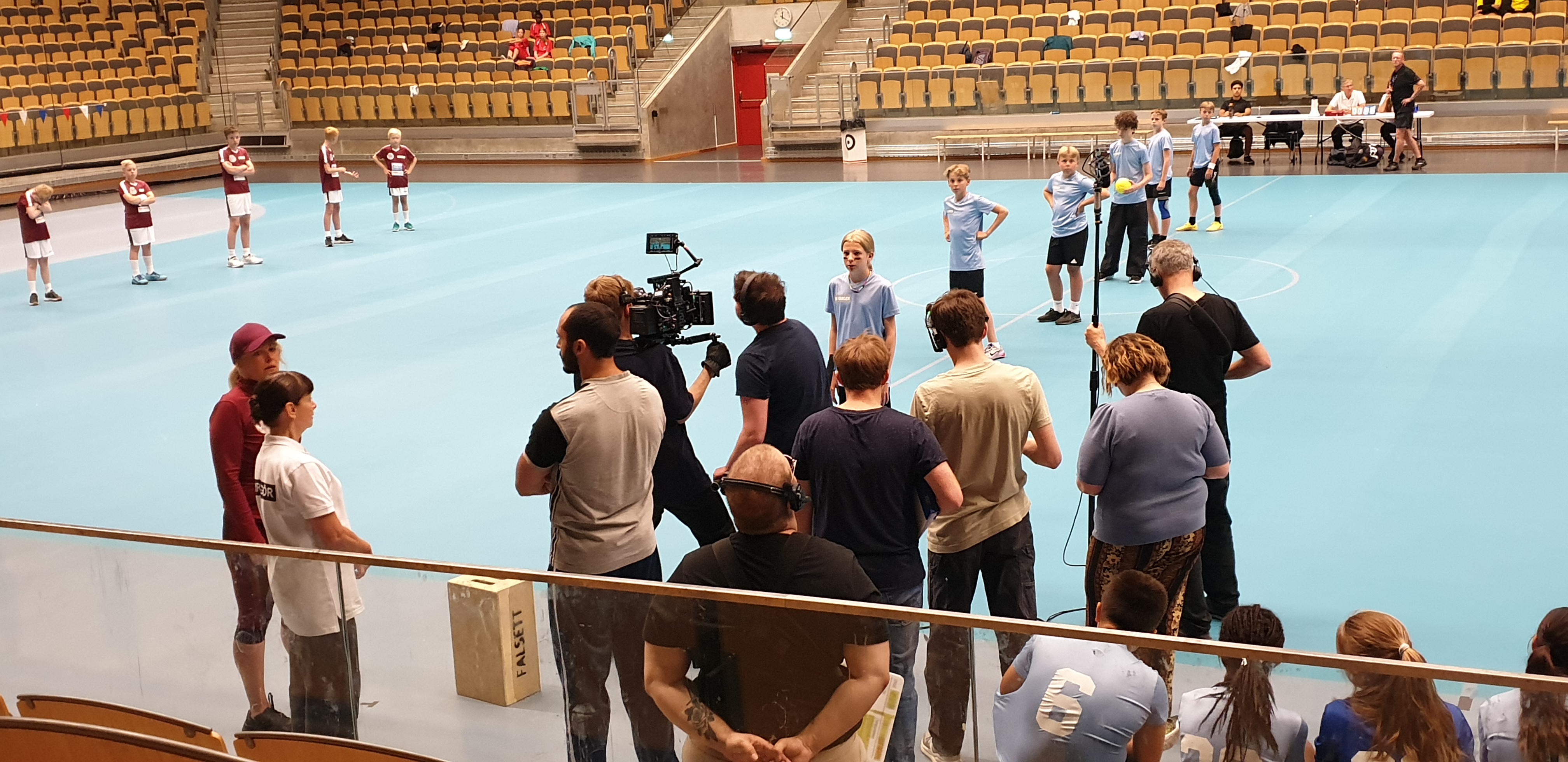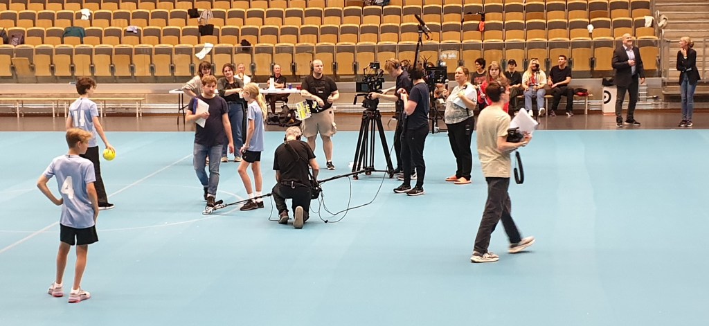Vi satt ganska utspridda för vi var inte så många, men dom två jag hade i närheten var rutinerade statister (”HEEEJ Jonas, va kul att du är här idag, det var ju inte så länge sen vi sågs – visst var det en KUL inspelning det där vi gjorde??!!”) och väldigt trevliga. Men det blev en rätt lång dag iallafall – 8 timmar på en träbänk i en idrottshall…inte byta plats, inte gå därifrån annat än för lunch och korta toabesök, jubla mer, gräla lite, skrika och bua mycket fast inte SÅ mycket, gestikulera mer fast inte SÅ mycket men lite mer ändå…ta om igen….